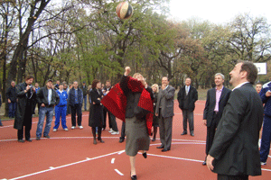 Нове подлоге од тартана први су испробали ученици основних школа са Чукарице, којима су посебну част учинили министарка омладине и спорта Снежана Самарџић-Марковић и директор Републичког завода за спорт Јасминко Поздерац, изводећи почетна бацања лопте у игру.