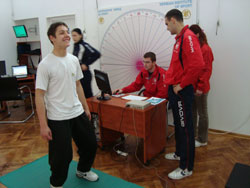 У Републичком заводу за спорт тестирани су спортисти Веслачког савеза Србије. У Центру за моторичка истраживања и аналитику у спорту обавили су: директну процену гипкости, процену снаге и процену јачине стандардним изометријским тестом у коме се прати максимална сила и брзина прираста силе. У Сектору медицине-спорта обавили су: спортско-медицински преглед, биохемијску анализу крви, спирометрију и ергоспирометрију. На психолошком тестирању урадили су процену личности и особина које су потребне за спортски успех и других вештина специфичних за спортске ситуације.