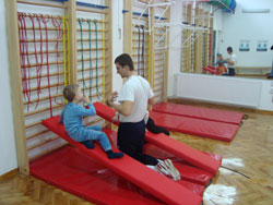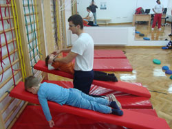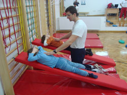 -sprovođenje programa vežbi za prevenciju i korekciju deformiteta kičmenog stuba, grudnog koša i donjih ekstemiteta, kao i vežbe razvoja motoričkih sposobnosti krož grupni i individualni rad