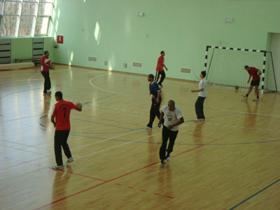 Reprezentativci najbolje afričke rukometne selekcije, na svim svetskim takmičenjima među 8 najboljih ekipa, četvrti na Svetskom prvenstvu 1999., svetski juniorski prvaci 1993., prvaci Sveta u rukometu na pesku 2003., treniraju dva puta dnevno u Nacionalnom trening centru i spremaju se za prijateljski meč protiv selekcije Srbije.