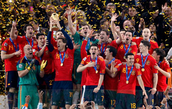 Fudbaleri Španije postali su prvaci sveta pobedom u finalu nad Holandijom od 1:0 nakon produžetaka. Reprezentacija Španije dvanaest puta je učestvovala na Svetskim prvenstvima. Najbolji uspeh ostvarila je osvajanjem 4. mesta 1950. godine na SP u Brazilu. Španska reprezentacija je dva puta osvajala Prvenstvo Evrope u fudbalu, 1964. i 2008. godine.