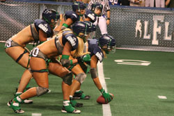 Na terenu svaka ekipa ima sedam igračica, sa istim brojem rezervi na klupi. Trajanje utakmice je dva poluvremena po 17 minuta. Za razliku od drugih liga u američkom fudbala, u LFL izuzev početnog udarca, šuta nema. Isključivo može da se poentira tačdaunom koji nosi šest poena, nakon koga ekipa može da ide na pretvaranje za jedan (sa linije od jarda) ili za dva poena (pet jardi). Ukoliko u regularnom vremenu nema pobednika, meč odlučuje produžetak u trajanju od osam minuta u kojem pobeđuje prva ekipa koja postigne tačdaun. |