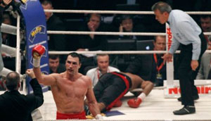 Ukrajinski bokser Vladimir Kličko odbranio je titulu u WBO, IBO i IBF verziji, nokautiravši izazivača Samuela Pitera iz Nigerije. Ukrajinac je poslao Nigerijca na pod u 10. rundi serijom snažnih udarača kojima je obezbedio 55. pobedu u 58 mečeva. Nigerijac nikada ranije nije bio u nokautiran.